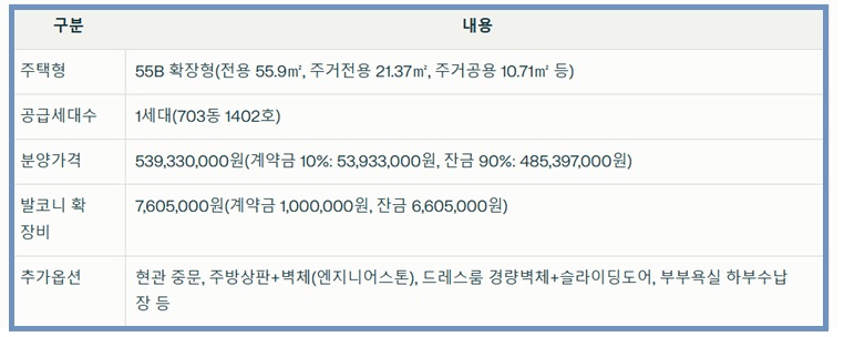 ✔ 이번 공급주택: 703동 1402호(55B타입, 확장형)