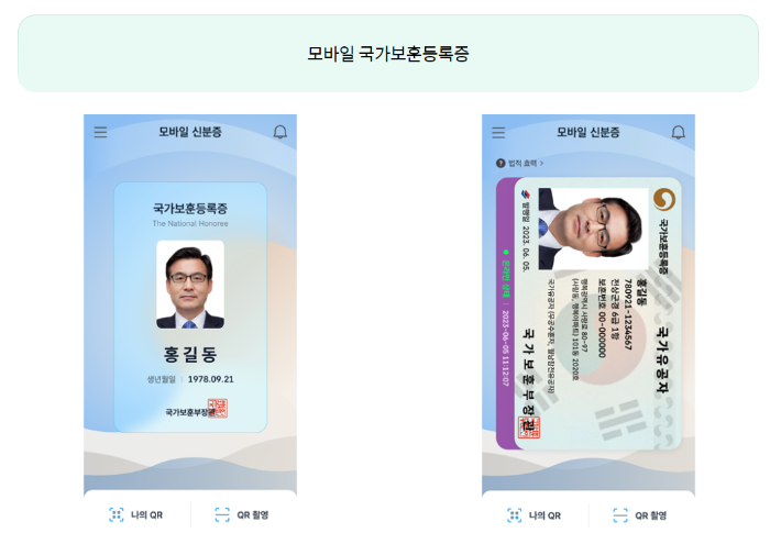 모바일로도 국가보훈등록증을 발급받고 싶으시면, 관할지청에서 실물카드를 발급받으신 후에 모바일 신분증 앱을 다운로드하셔서 인증을 하시면 됩니다.