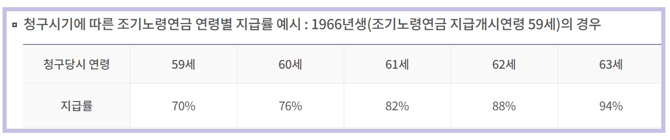 ✔ 신청 기간 : 조기 수령은 수급 개시 연령보다 최대 5년 일찍 받을 수 있습니다.