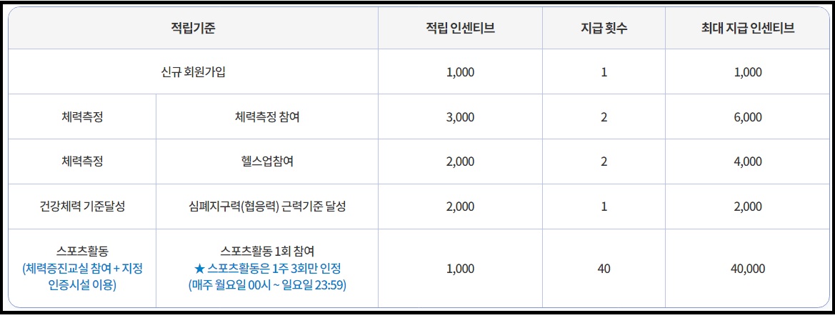 스포츠활동 인센티브 적립기준