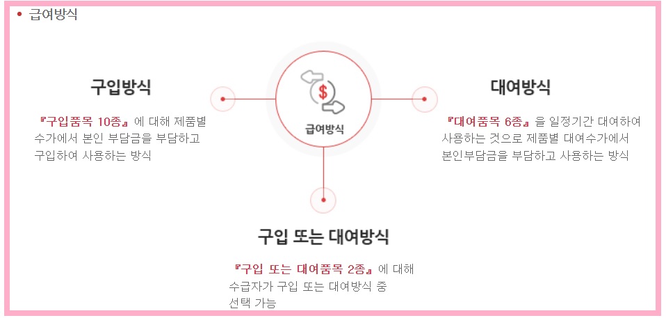 전동침대, 지팡이, 휠체어 등 복지용품을 구입할 때 비용 지원을 받을 수 있습니다.