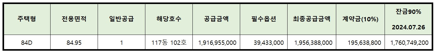 84D타입이 필수옵션 포함한 최종공급금액이 19억대입니다.