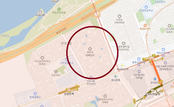 서울시 서초구 반포대로 333위 위치한 래미안 원베일리는 2,990세대의 대단지 아파트이며, 총 23개의 동으로 이루어져 있습니다. 9호선 신반포역과 3호선, 7호선, 9호선의 고속터미널역이 인근이 있으며 한강도 바로 앞, 주변 인프라도 다 갖춰져 있는 위치가 매우 좋은 아파트입니다.