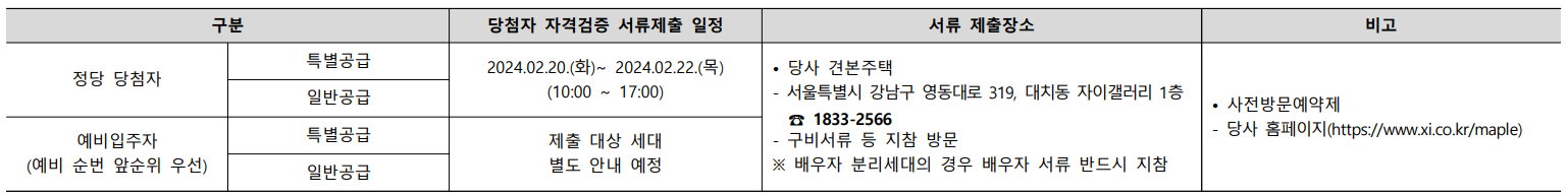 당첨자 자격검증 서류제출일정