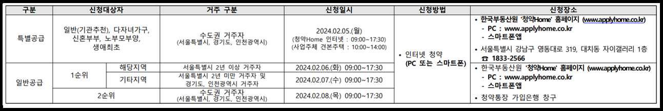 특별공급 일정은 2월 5일이고 일반공급일정은 2월 6일, 7일입니다.