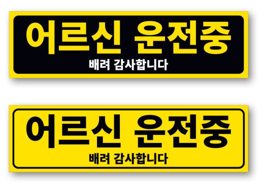 - 보통은 차량 뒤쪽에 부착해 "이 차량은 고령 운전자 차량입니다. 양해 부탁드립니다"라는 문구가 들어가는 형식이에요.