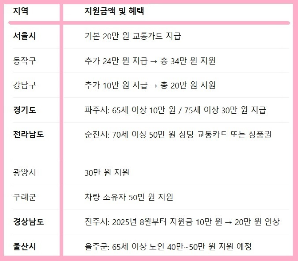 * 참고: 지원금은 지자체의 예산 상황에 따라 변동될 수 있으므로, 거주 지역의 주민센터나 시청 홈페이지를 통해 최신 정보를 확인하는 것이 좋습니다.