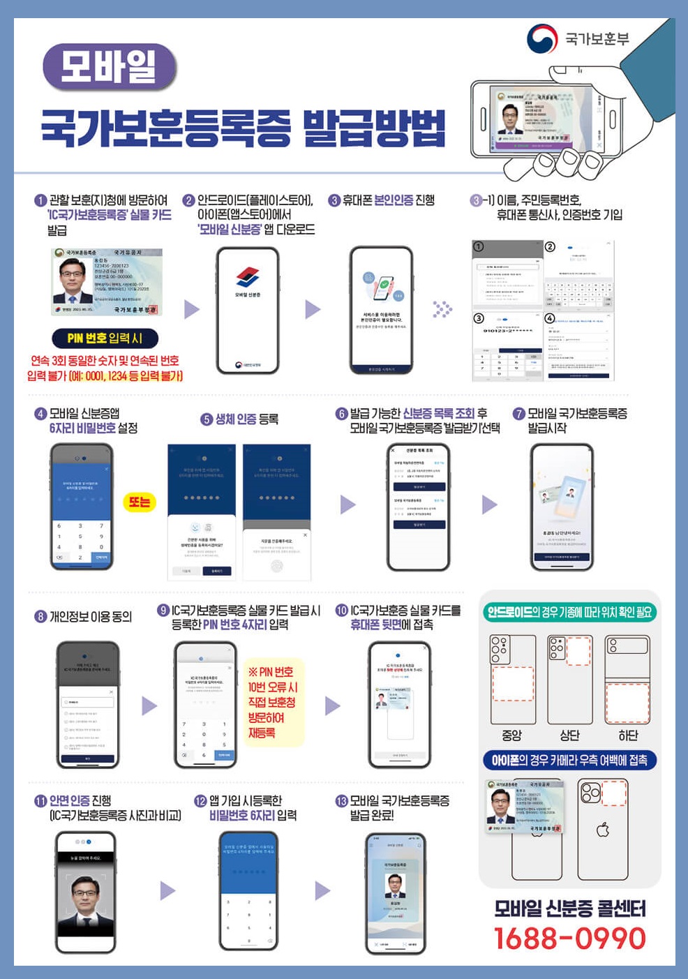 12. IC국가보훈증 실물카드를 휴대폰 뒷면에 접촉