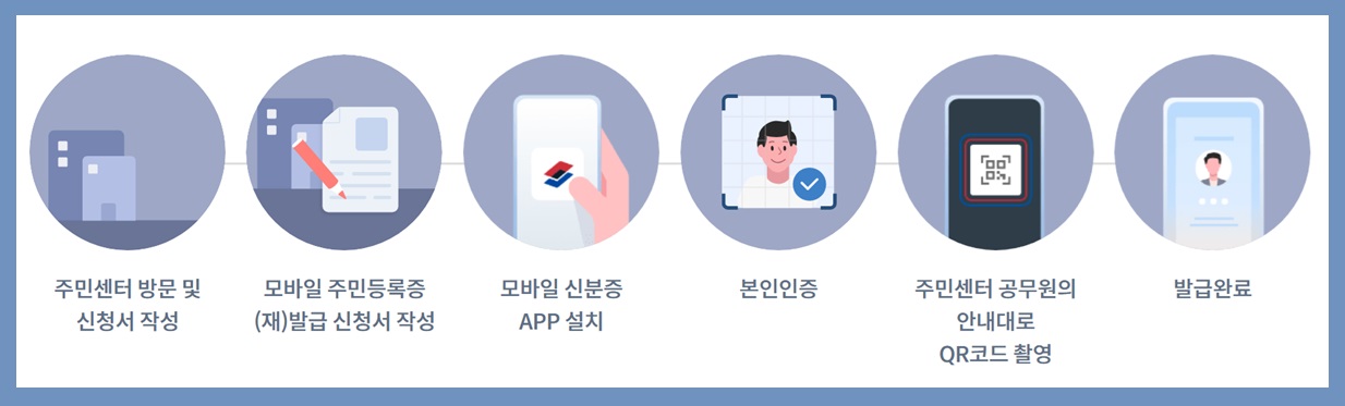 - 가까운 주민센터를 방문하여 IC 칩이 내장된 주민등록증을 신청합니다.