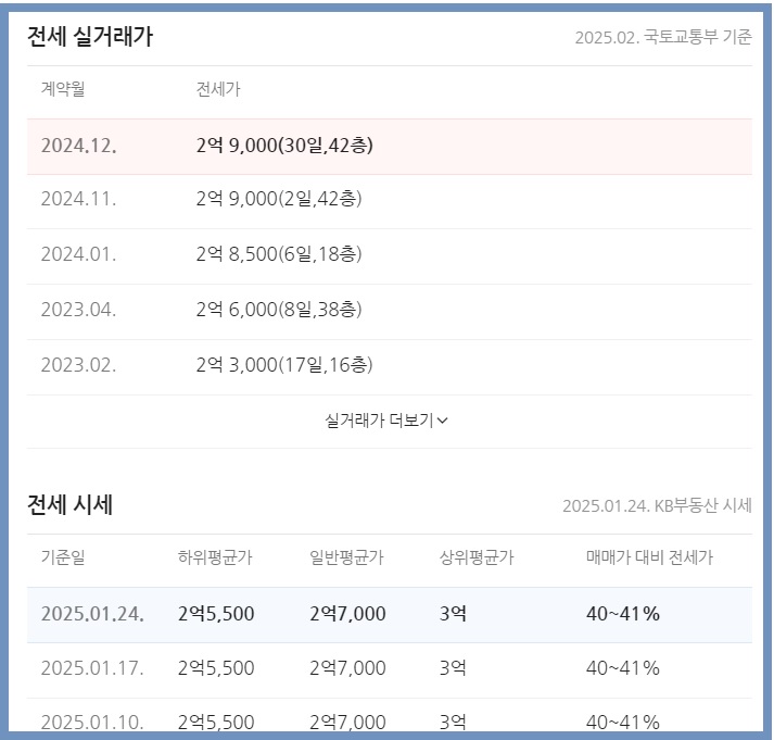 현재 전세 시세는 2억 후반대가 많아 보이네요.