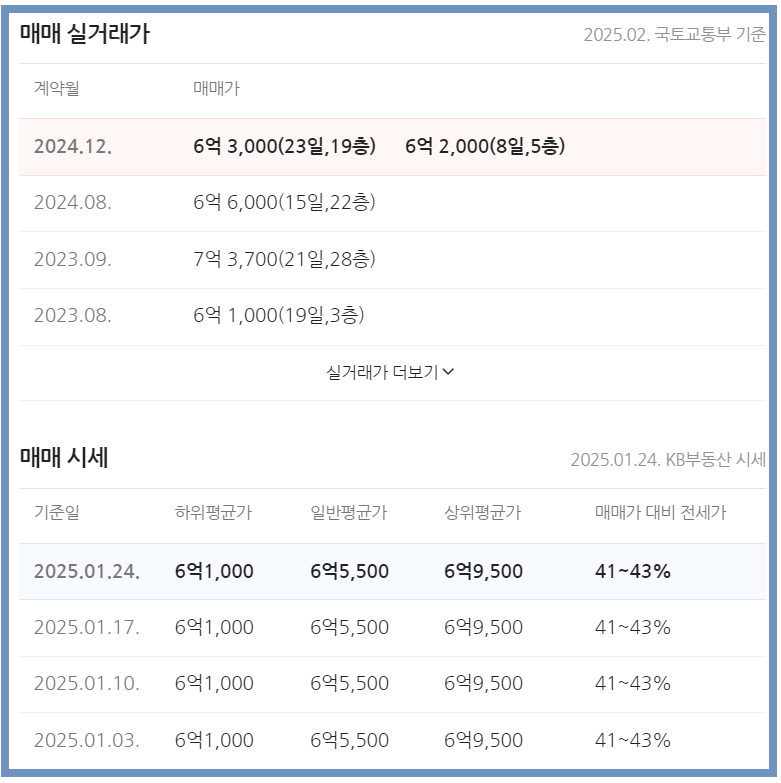 최근 국토부 실거래가는 6억 초반대입니다.