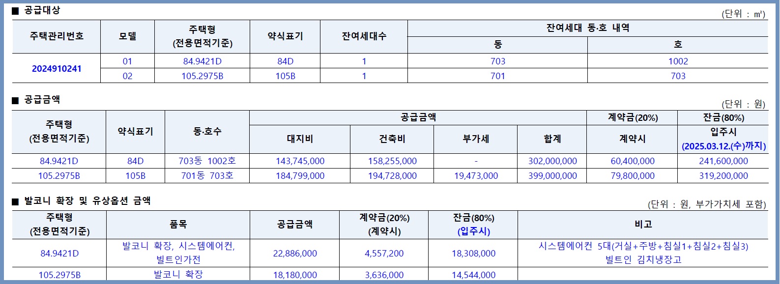 H4블록은 2세대로 84D와 105B이며 계약금 20%와 잔금 80%로 진행됩니다.