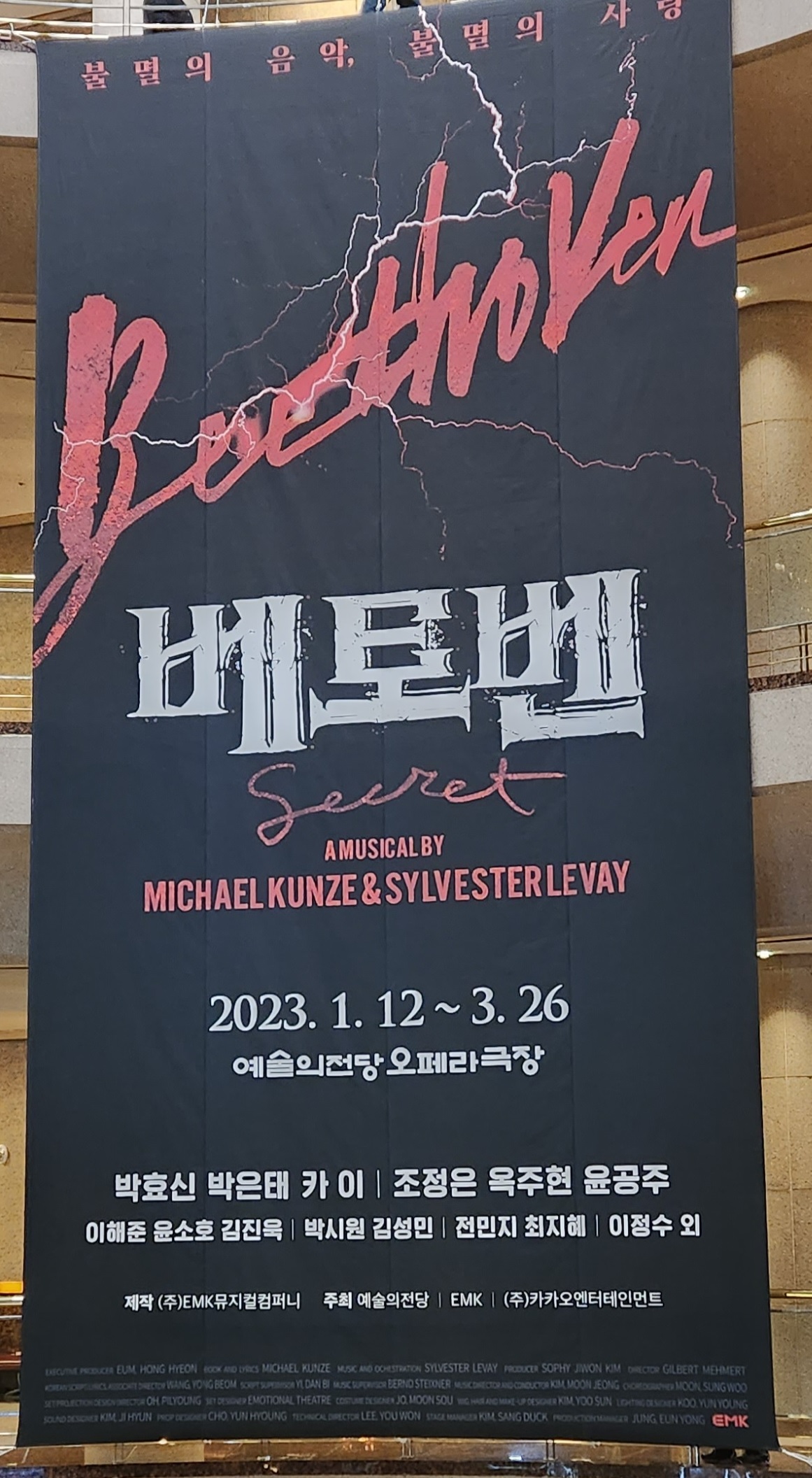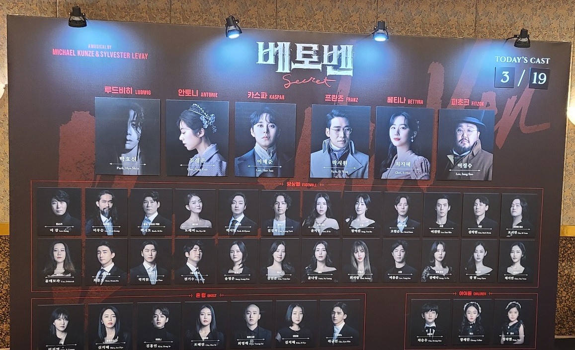 많이 들어보던 베토벤의 음악들이라 좋았지만, 같은 음악인가 싶게 비슷한 음악들인 듯한 것이 있었고 중간에 두 명이서 대사 하듯 노래할 때나, 앙상블의 노래는 가사가 잘 들리지 않아서 아쉬웠습니다.