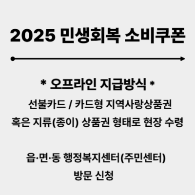 - 선불카드, 카드형 지역사랑상품권, 혹은 지류(종이) 상품권 형태로 현장 수령