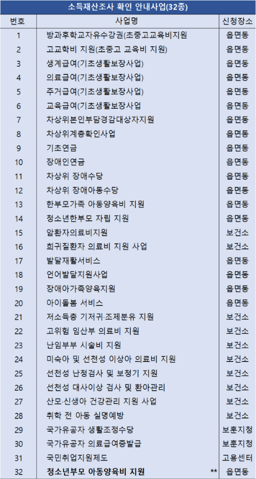소득재산조사 확인 안내사업(32종)