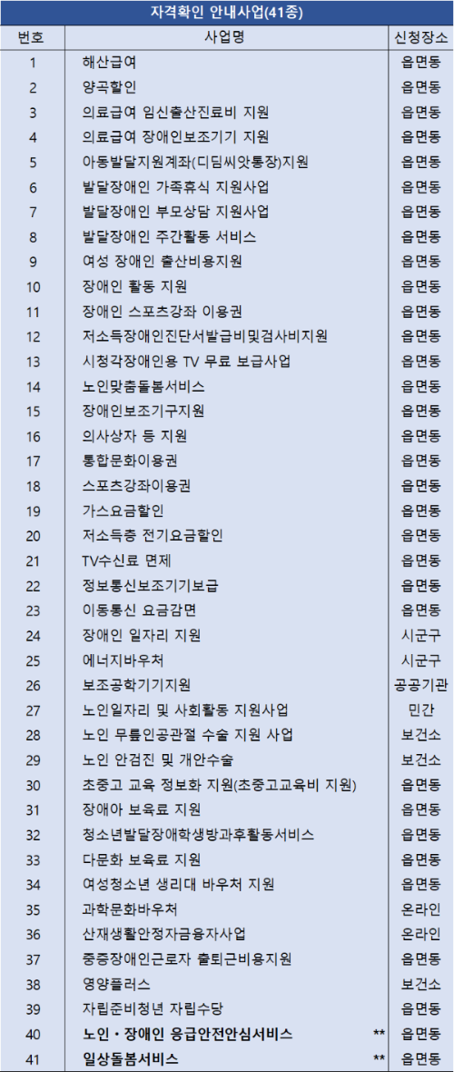 자격확인 안내사업(41종)
