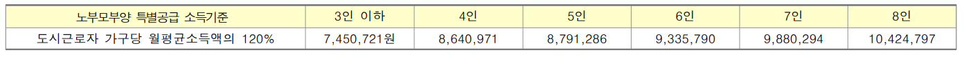 - 입주자모집공고일 현재 만 65세 이상의 직계존속(배우자의 직계존속 포함)을 3년 이상 계속하여 부양(같은 세대별 주민등록표등본상에 등재되어 있는 경우에 한함)하고 있는 무주택세대구성원 중 세대주