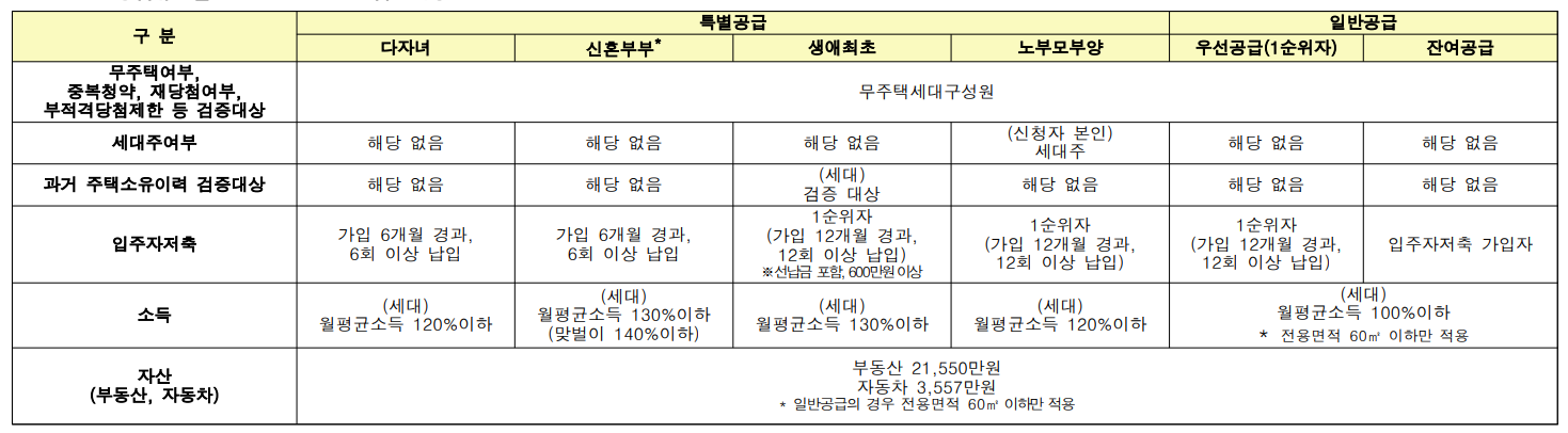 공급유형별 신청자격이 해당되시는지 확인하셔야 합니다.