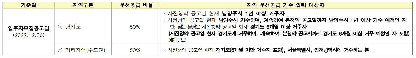 - 신청자 및 신청자와 동일세대 내에서 1인 이상이 ‘22.12.30 우리 공사의 사전청약 입주자모집(일반형 공공분양주택, 나눔형 분양주택) 단지에 중복 및 교차청약 시 모두 부적격처리됨을 유의하시기 바랍니다.