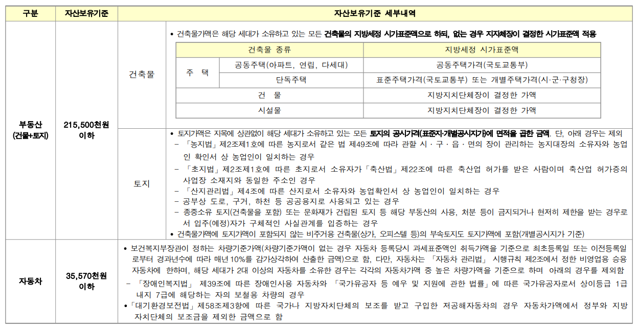 - 현재 “<표 3> 부동산 및 자동차 소유에 관한 자산보유기준”을 충족한 분