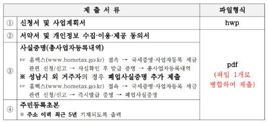 청년 재창업 지원 제출서류