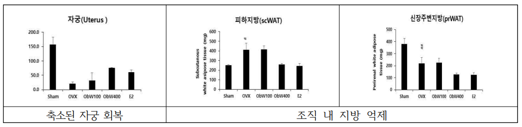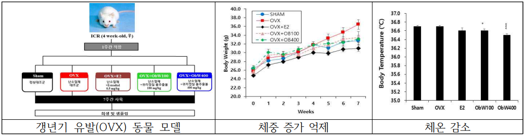 갱년기를 유도한 실험용 쥐에 귀리껍질 물 추출물 (400 ㎎/㎏)을 7주간 투여결과