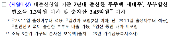 주택가격은 9억 원 이하이며 전용면적 85㎡ 이하가 대상입니다.