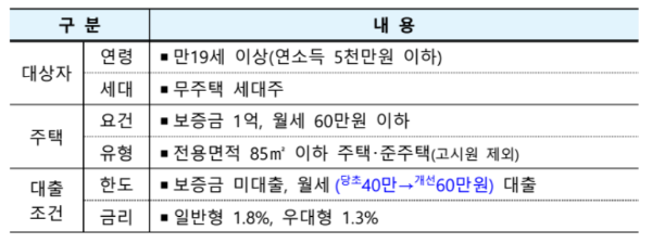 마지막으로 주거안정월세대출도 있습니다. 이 대출은 청년용으로 한정된 건 아니고 만 19세 이상이면