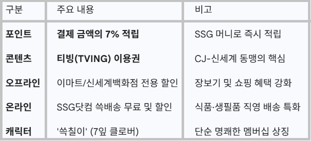 📌 쓱세븐클럽: CJ와 손을 잡고 티빙(TVING) 혜택을 기본으로 넣었습니다. 장보기 멤버십이면서 동시에 OTT 멤버십의 성격을 가집니다. (기사 기준 3월부터 옵션형 도입 예정)