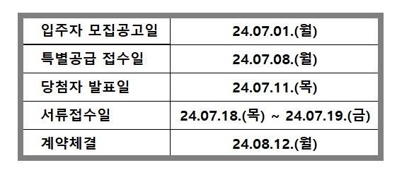 주택유형 및 모집공고일 일정
