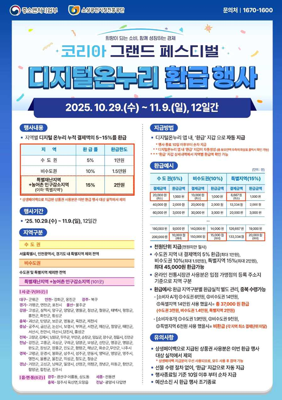 - 환급은 1천 원 단위로 이루어지며, 최소 결제금액 기준 충족 시 자동 지급 (11월 20일 이후부터 순차 지급)