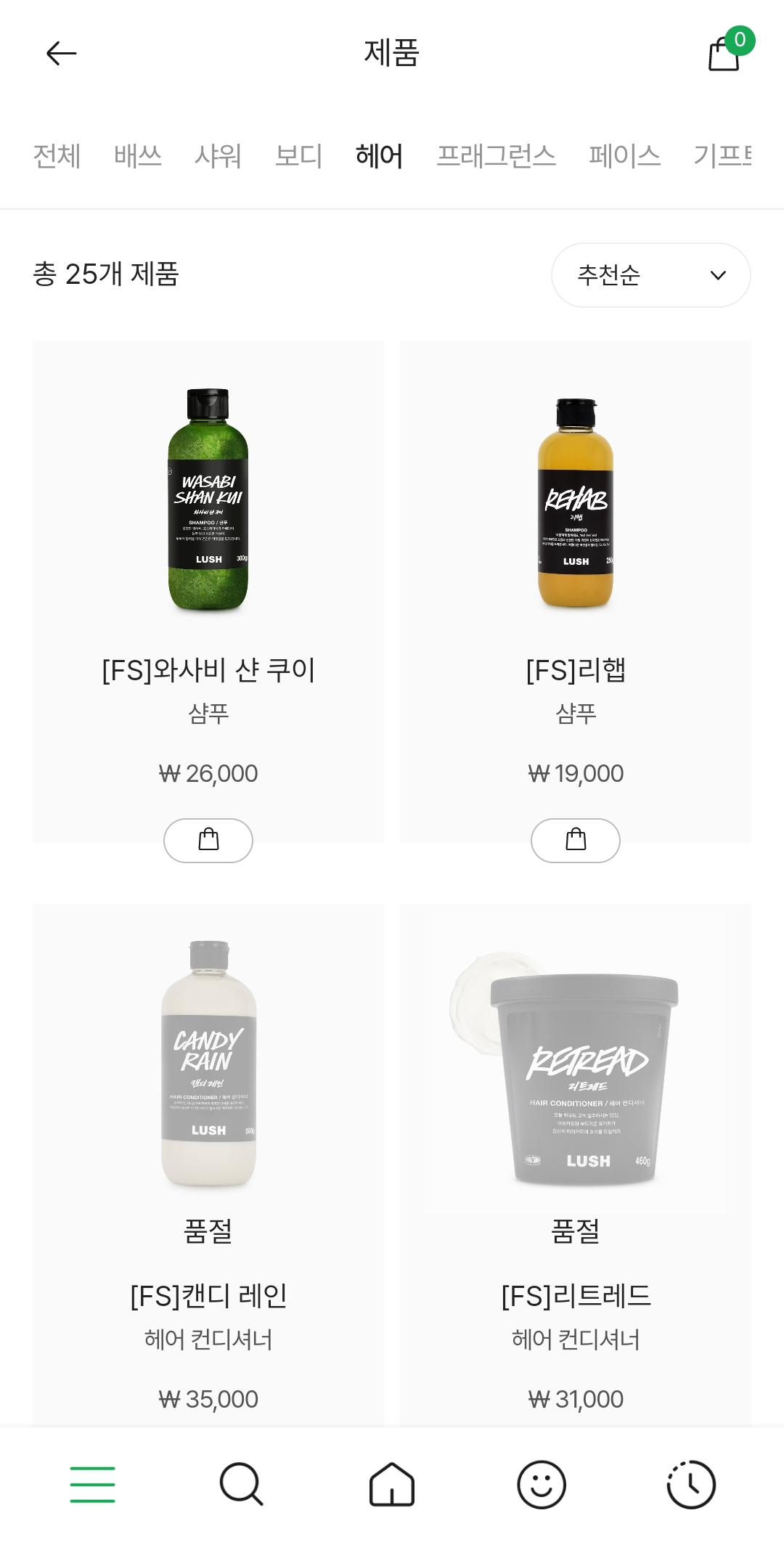 - 러쉬코리아 앱에서 프레쉬 세일이전에 담아둔 장바구니 제품은 세일 가격에 포함되지 않습니다. 프레쉬 세일 카데고리내의 제품을 장바구니에 담아 구매가 가능합니다.
