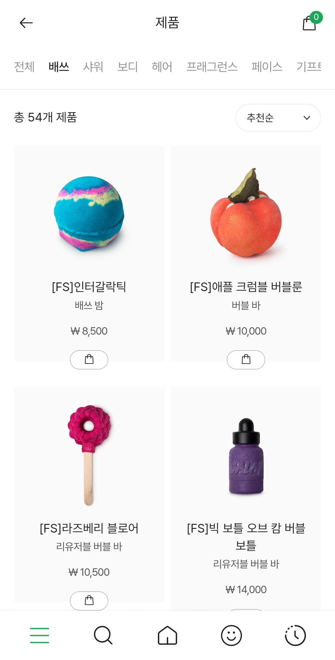 매장은 구매수량이 제한이 없으나 러쉬코리아 앱에서는 한 주문번호당 동일제품은 최대 10개만 구매가 가능합니다.
