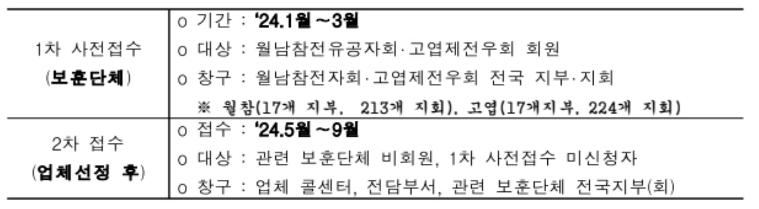 해당 업체의 콜센타와 보훈부전담부서에서 신청 접수를 받습니다.