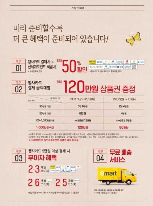 이마트에서는 1월 13일에서 1월 15일 구매건에 대해 구매한 금액 구간별로 페이백을 받으실 수 있습니다.