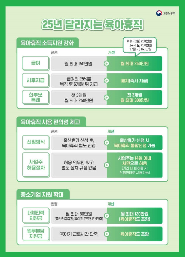 2025년부터 육아휴직에 대해서 몇가지가 개선되었습니다.