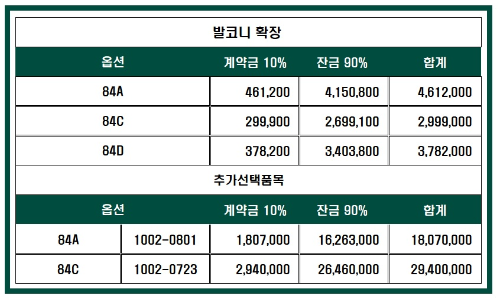 베란다확장 및 추가옵션은 계약금 10%와 잔금 90%로 진행됩니다.