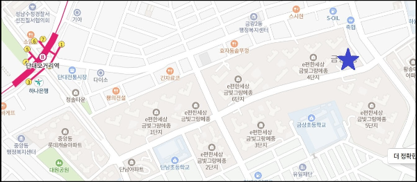 단대오거리 쪽이 아니라 역과의 거리가 있어서 버스를 이용해야 지하철 이용이 가능한 거리지만, 이미 주변 상권은 다 형성되어 있고 신구대와 가깝다는 장점도 있습니다.