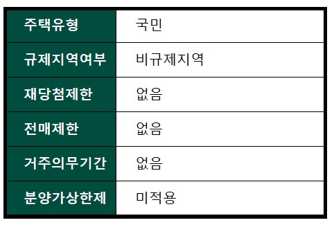 전매제한 기간도 이미 지나서 없고, 재당첨제한이나 거주의무기간이 없는 주택입니다.