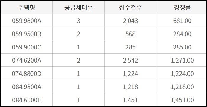 59 타입이 6 가구 모집에 2,896명이 청약해서 482.7대 1의 경쟁률이 나왔고